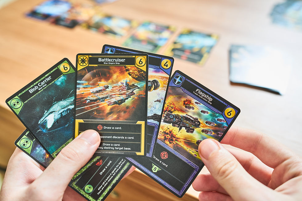 Compete head-to-head to create the most powerful deck of spaceships and bases.