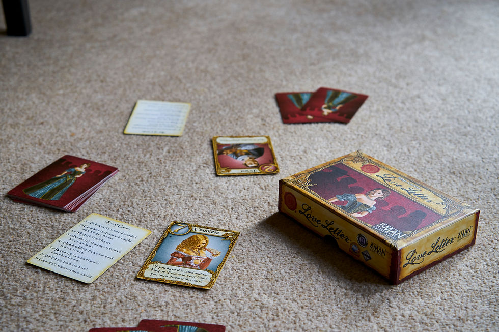 The concept of this game is simple, you want the characters in your hand at the end of the round to be the most notable in order to get close enough to the princess to deliver your love letter to her. To play, you chose one of the two characters in your hand - all with a varying degree of notability ranging from a simple guard, to a handmaid or even the king, and take the action assigned to that character. Actions help you to figure out what characters your opponent has, cause them to discard cards and more - all until only 2 characters remain in the deck.