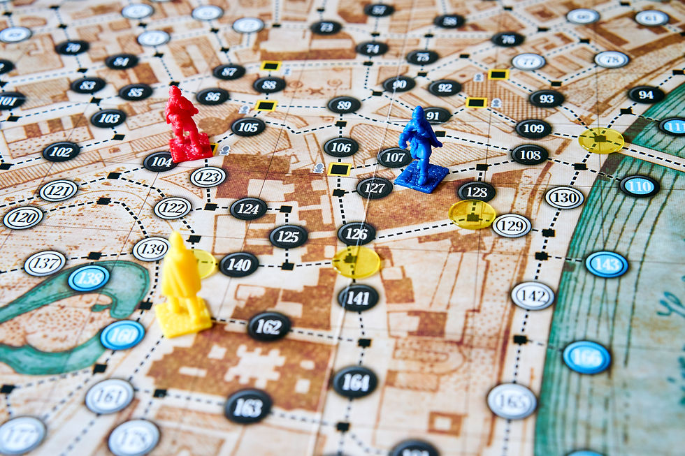 We have introduced this game to all manner of game-savy or newbie friends with similarly resounding success. All you have to do is catch one of your friends committing crimes across London. But unlike - almost - every other game out there your friend has no figure on the board. All of their movements are hidden. You discuss aloud where you reckon they could have gone in the last 4 turns while they sit opposite you hearing all of your theories. And before you start thinking “this is complicated” you have precisely 4 things you can do, ever. This game is delightfully simple because almost the entirety of it is played off the board in your head. You find yourself saying “They might be here!” as you count spaces from the last clue, or “They could be here, but that is too obvious, and they are just ballsy enough to take the obvious root, so yes, they might be here. Or here.”