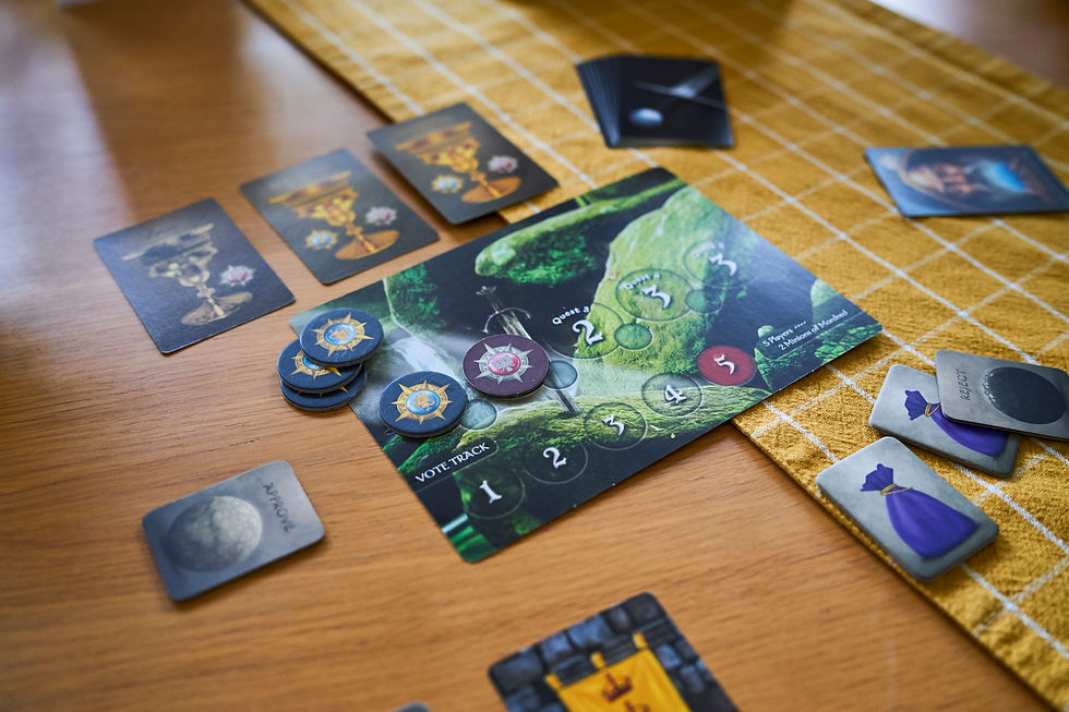 In Avalon you play as 2 teams; the good guys who have a single job, succeed 3 of 5 quests. And the bad guys who have 2 jobs, fail 3 of 5 quests, or find out who Merlin is. But we’ll come back to that magic sorcerer who's potentially sitting beside you that you’ll learn to love/hate like marmite. Why are these jobs difficult you might ask? Great question, but a bit weird if you had asked it aloud while reading this.